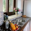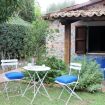 Il cottage dispone di una veranda coperta, attrezzata con salottino ed un bel tavolo con sedie in legno en un barbeque in muratura: il luogo ideale per mangiare all´aperto o gustare un buon bicchiere di vino.