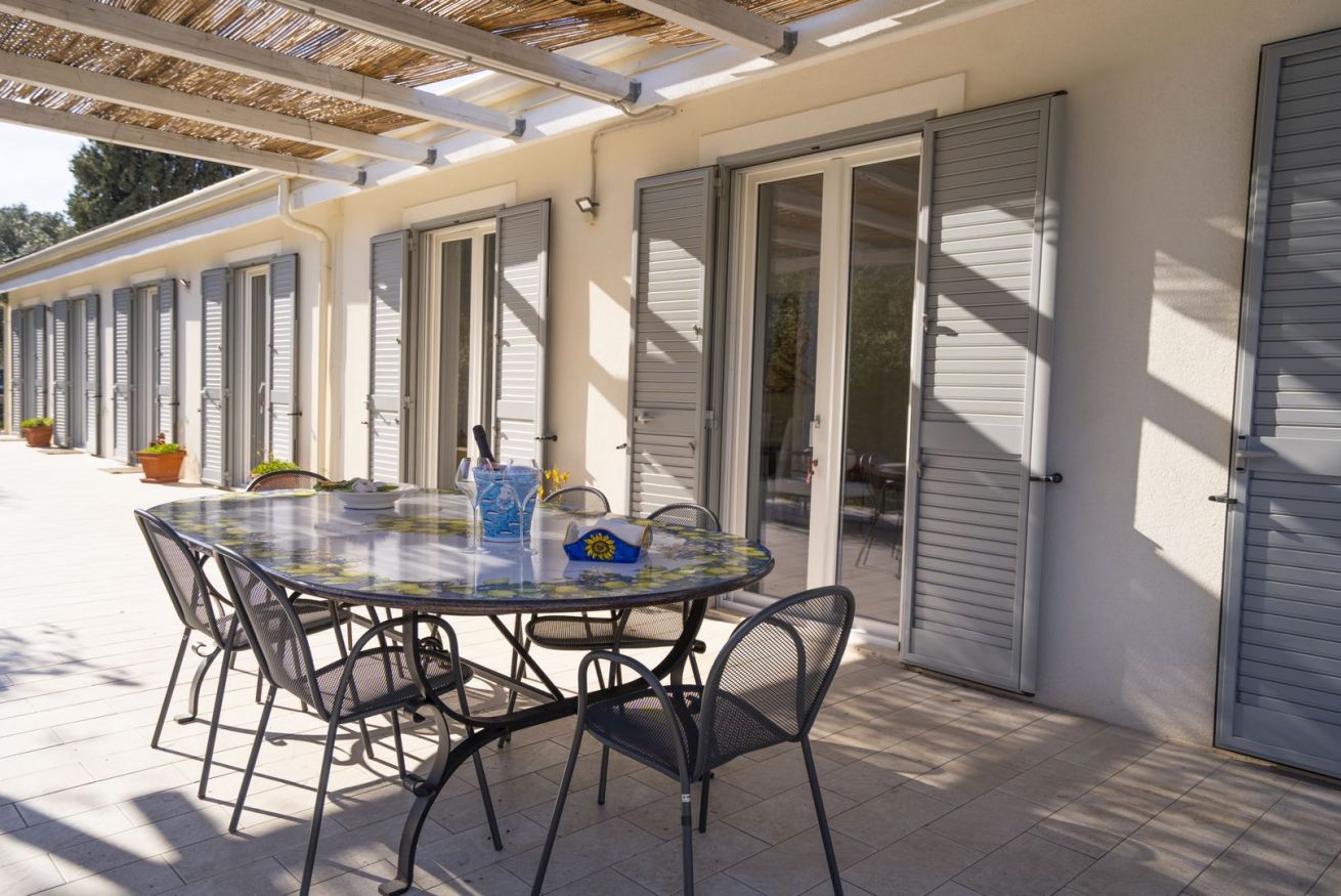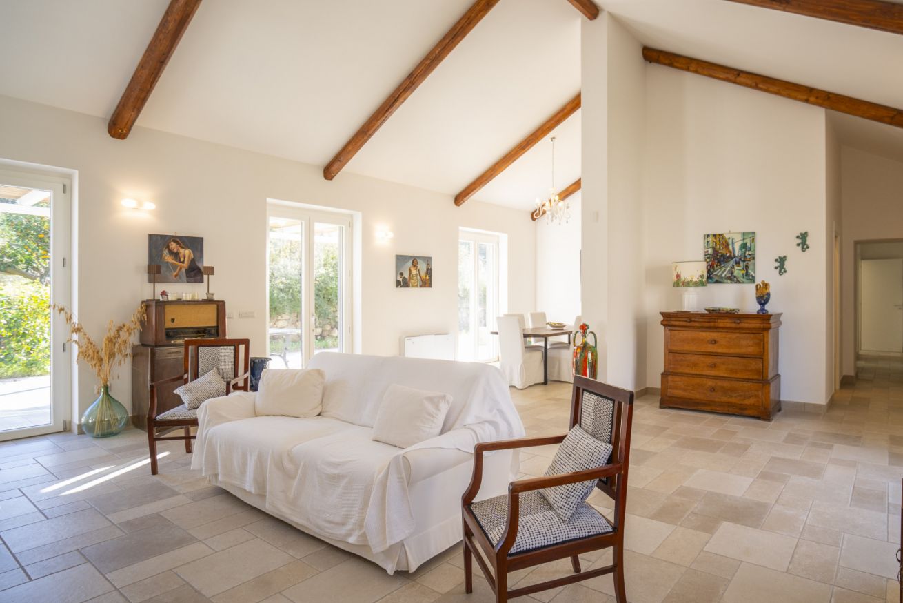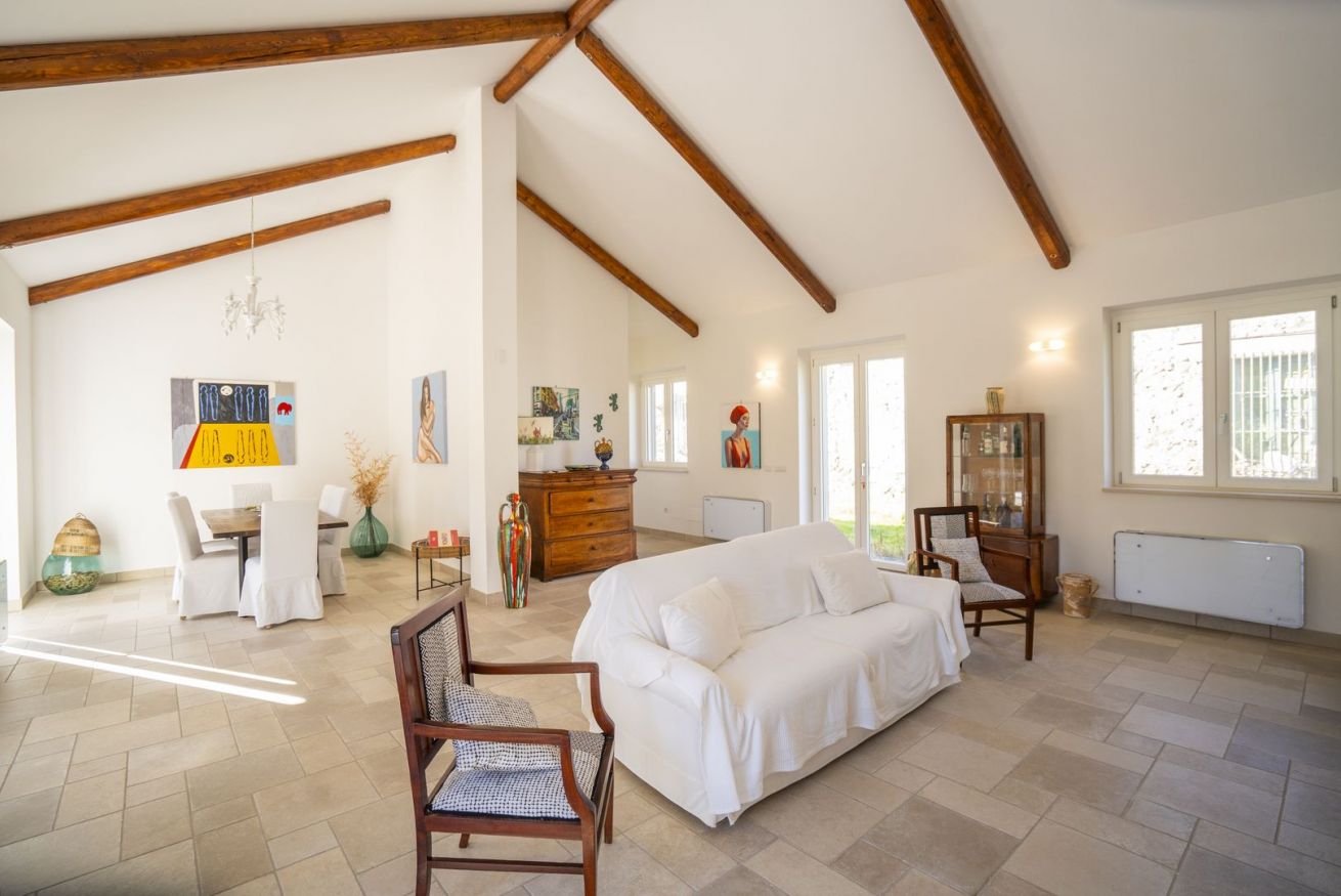 Gli spazi interni, luminosi e generosi, si aprono su terrazze panoramiche ai giardini curati, creando un'atmosfera serena in ogni angolo. La piscina privata è una vera oasi di pace, perfetta per rilassarsi sotto il sole mediterraneo.