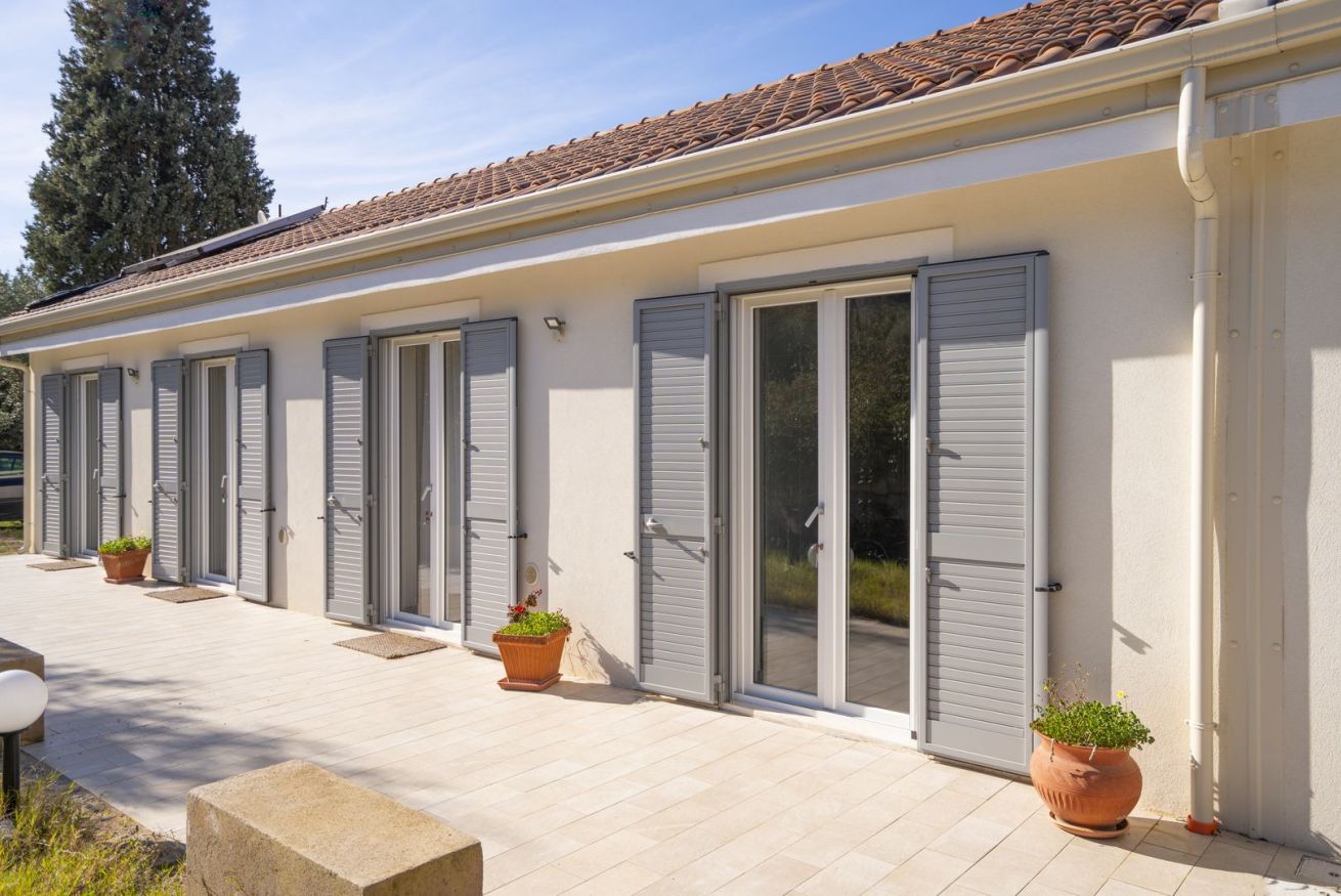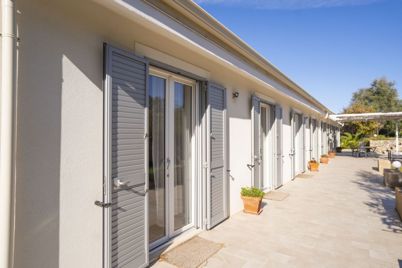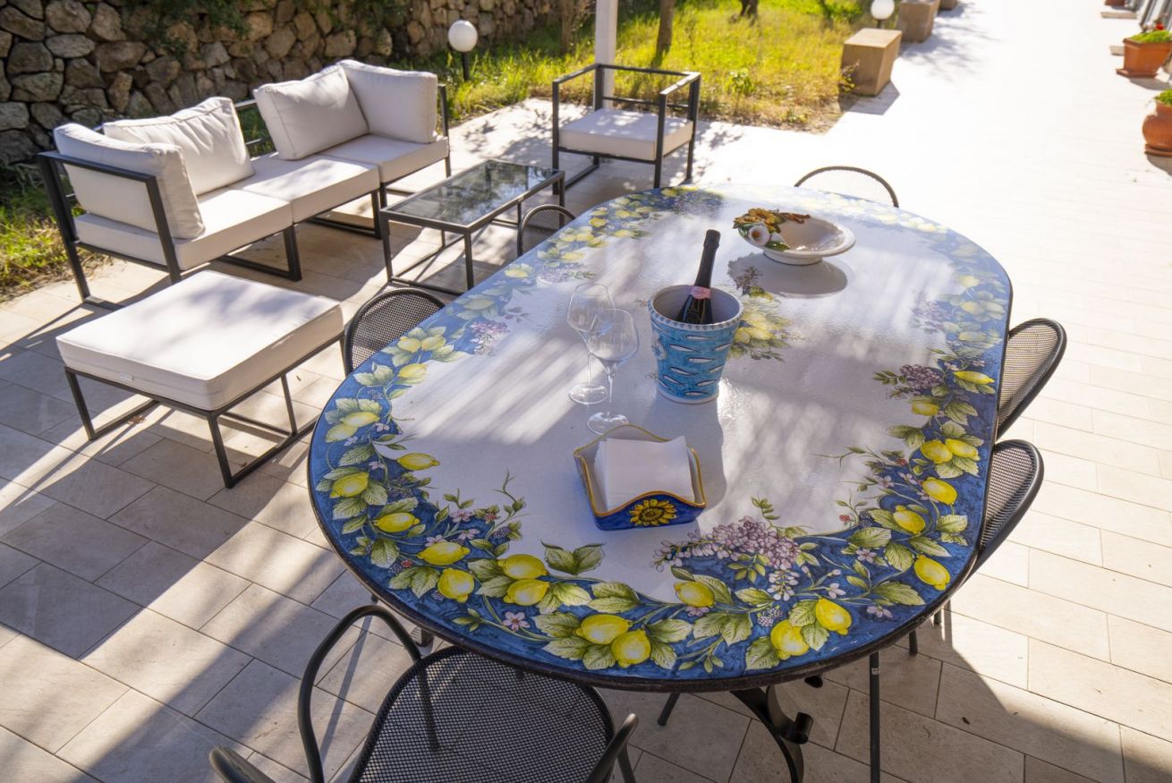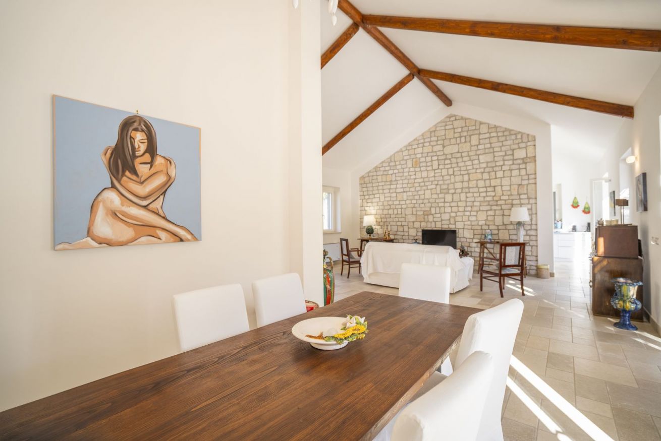 Gli spazi interni, luminosi e generosi, si aprono su terrazze panoramiche ai giardini curati, creando un'atmosfera serena in ogni angolo. La piscina privata è una vera oasi di pace, perfetta per rilassarsi sotto il sole mediterraneo.