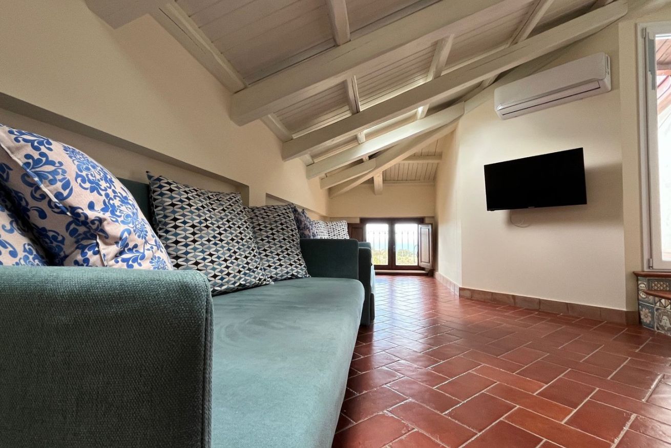 Due appartamenti indipendenti, per un totale di tre camere da letto, due bagni e un piccolo cucinino in uno degli appartamenti. Da qui si accede a un ampio terrazzo con vista mare, perfetto per momenti di relax.
