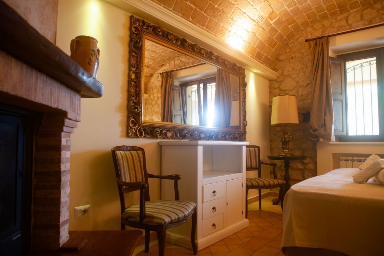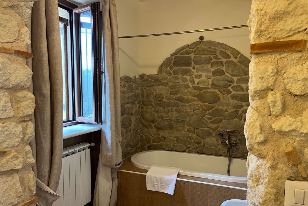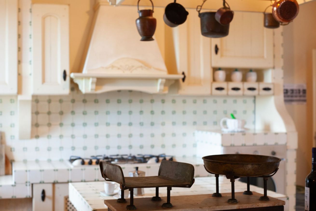 Una cucina in muratura nello stile dei vecchi casali, un ampio soggiorno luminoso con accesso diretto al giardino, una camera da letto. Al piano terra e' presente anche un bagno con doccia.
