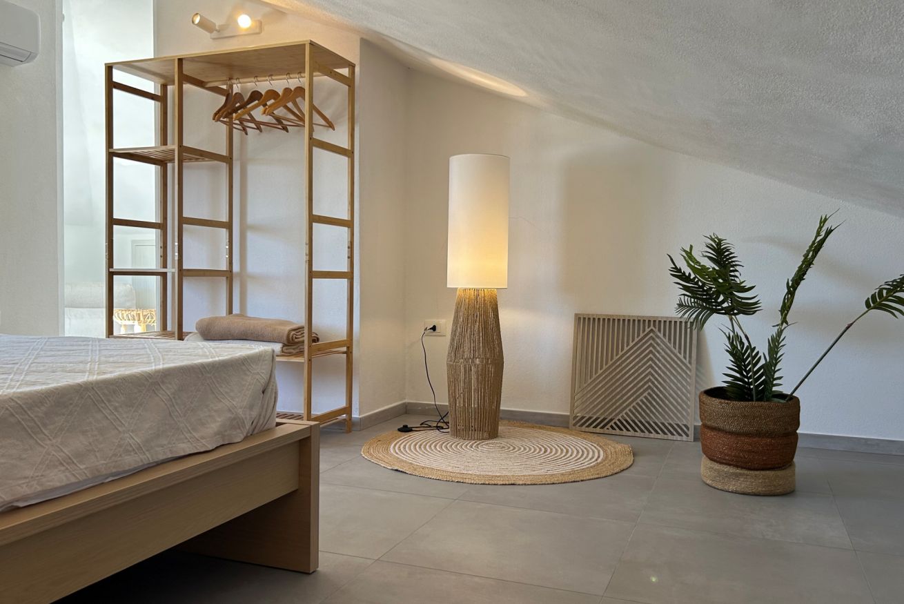 Il piano superiore, raggiungibile tramite una comodo scala esterna, è dedicato al relax e alla privacy. Qui si trova una spaziosa camera matrimoniale con bagno privato, perfetta per momenti di quiete e benessere. E’ presente un angolo attrezzato con bollitore, macchina da caffè e mini frigo quale offre ulteriore comfort e autonomia.