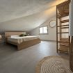 La zona notte ospita due camere matrimoniali, arredate con eleganza e materiali naturali, e una camera da letto alla francese (140 cm), pensata per garantire comfort e tranquillità. Il piano è dotato di due bagni con doccia.