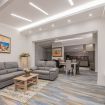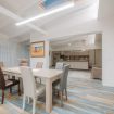 La zona giorno e pranzo è dotata di un divano e di una TV a grande schermo. La cucina, la sala da pranzo e il soggiorno hanno una superficie di 100 metri quadrati.